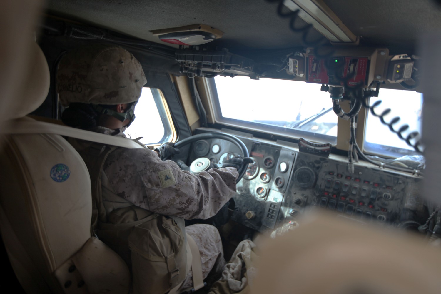 Lance Cpl. Lizbeth Cornelio a motor transportation operator with Combat Logistics Battalion 7 drives to Forward Operating Base Delaram on a Patrol to pick up equipment and bring it back to Camp Leatherneck, Afghanistan, Jan. 16, 2014. Several CLB-7 Marines participated in the patrol as they transition into Afghanistan to assumes reponsibilities as the logistics battalion for Regional Command (Southwest).