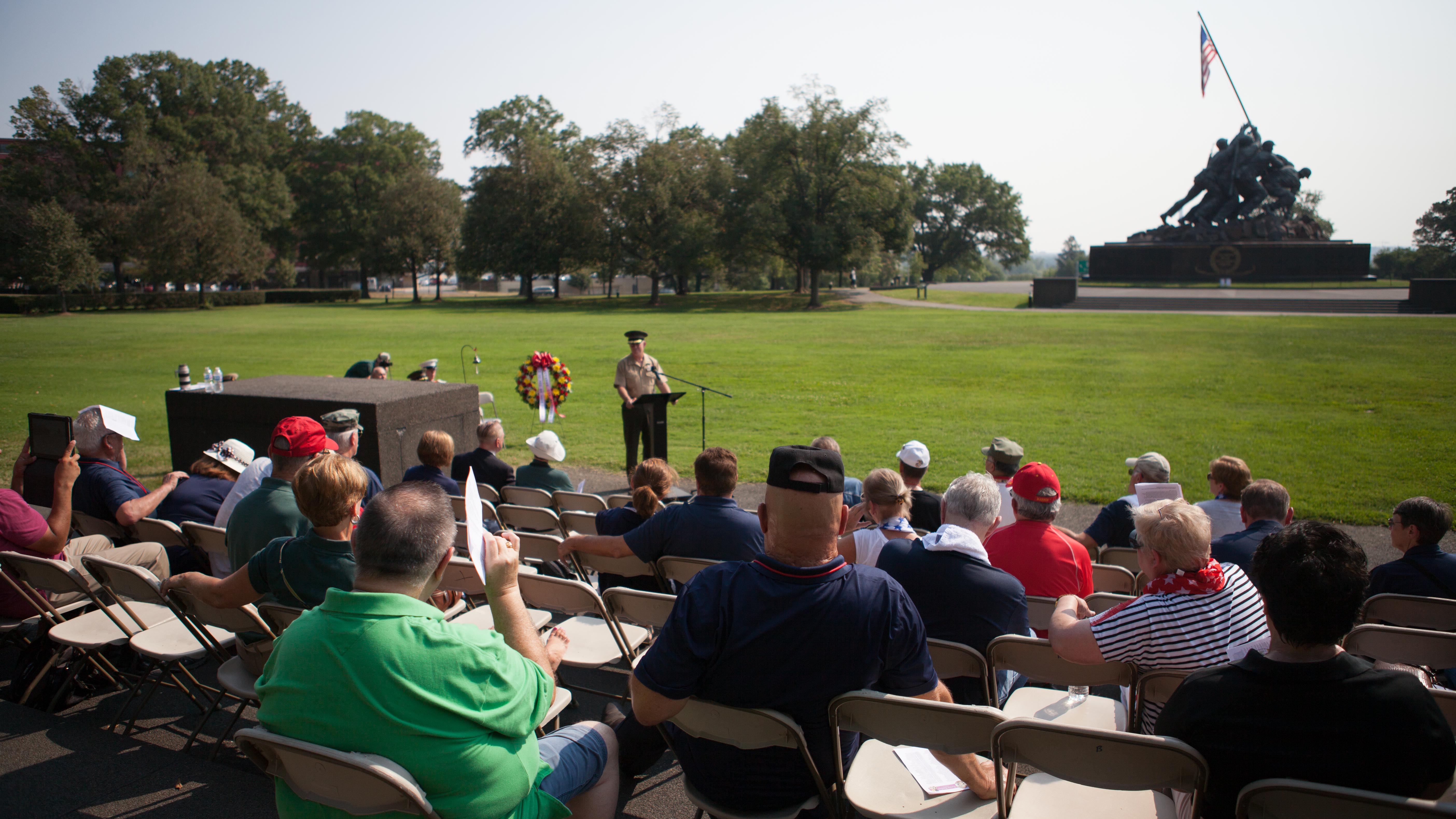 Rear Adm. Brent W. Scott, the Chaplain of the United States Marine Corps, delivers remarks during the Remembrance Ceremony for Company “H”, 2nd Battalion, 26th Marines held at the Marine Corps War Memorial at Arlington, Va., Sept. 3. The ceremony celebrated the achievements of the unit and those Marines and sailors, who gave their lives to accomplish their mission.
