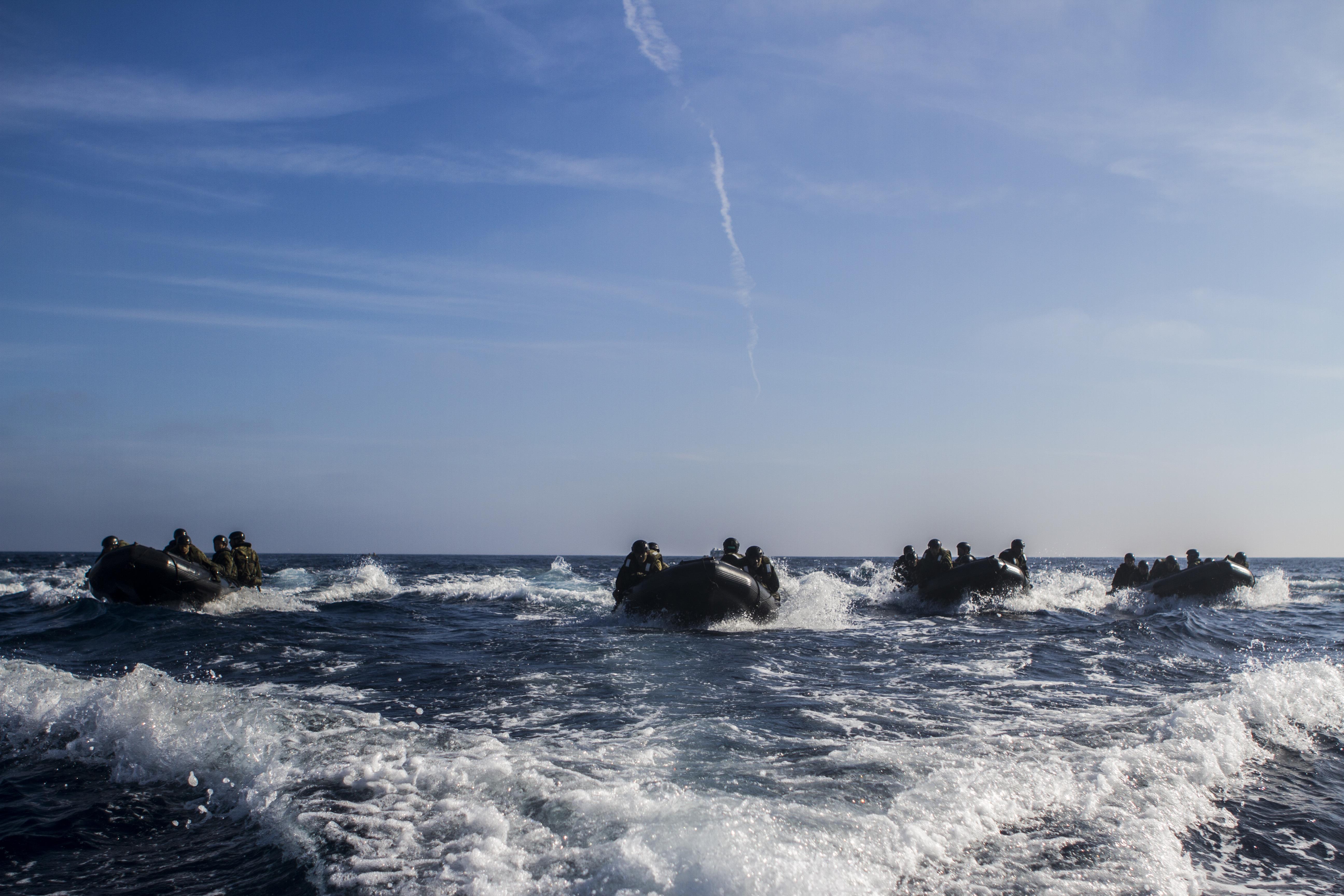 Marines with 1st Reconnaissance Battalion, 1st Marine Division, and members of the Japan Ground Self-Defense Force conduct amphibious raids and military operations on urban terrain aboard Marine Corps Base Camp Pendleton, Calif., Feb. 3, 2015, during Exercise Iron Fist. Exercise Iron Fist is an annual bilateral training exercise between U.S. and Japanese military forces that builds their combined ability to conduct amphibious and land-based contingency operations.