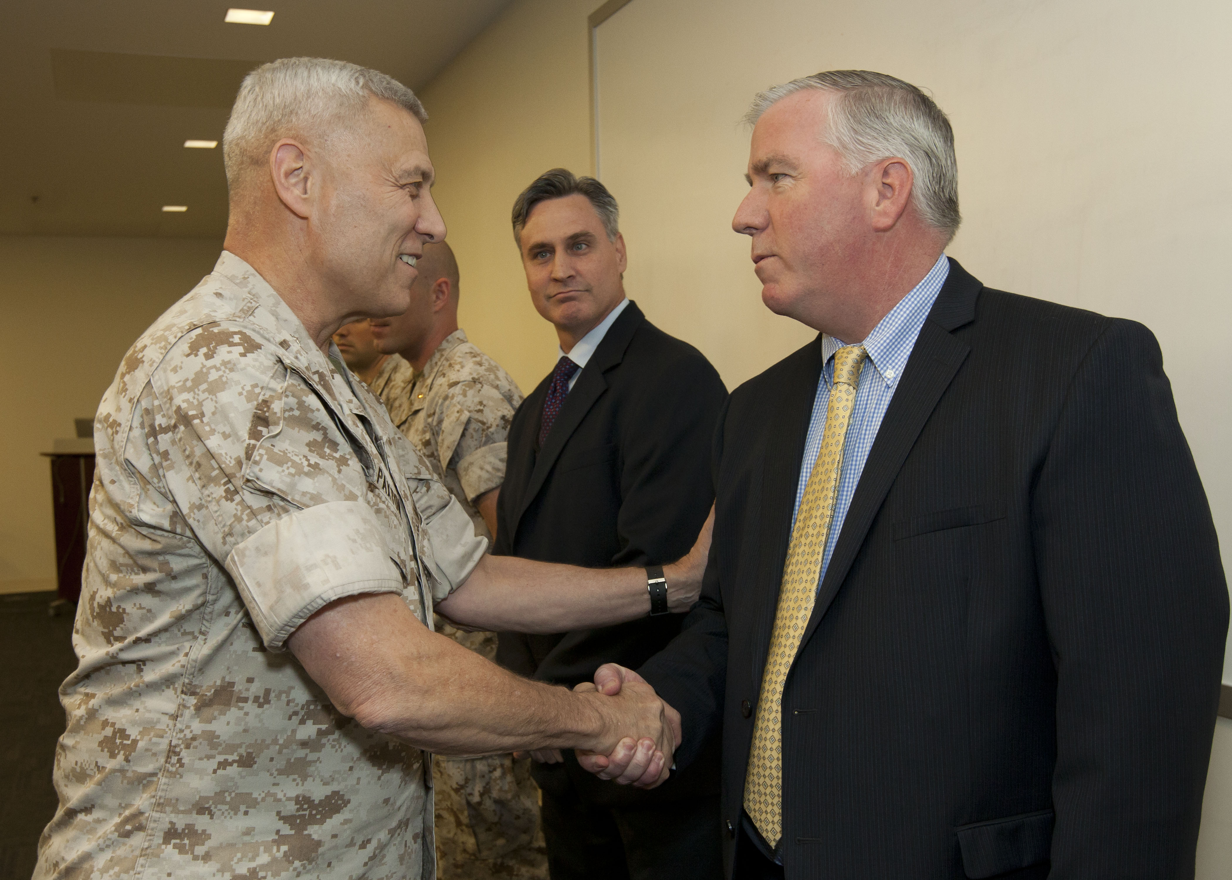 The Assistant Commandant of the U.S. Marine Corps, Gen. John M. Paxton, Jr., speaks with Marines from U.S. Marine Corps Forces Cyberspace, July 23, 2015. (U.S. Marine Corps photo by Sgt. Tia Dufour/Released)