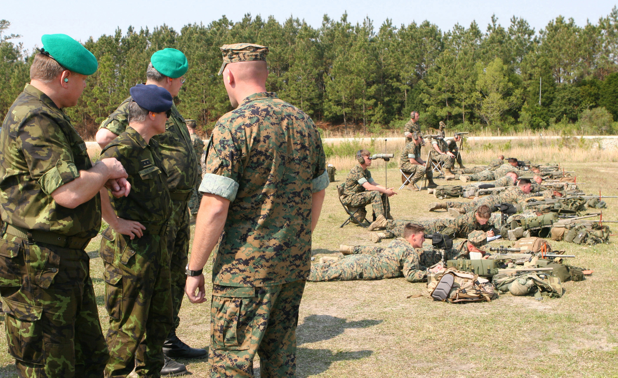 MARINE CORPS BASE CAMP LEJEUNE, N.C. - (pictured at far left) The top military officer for the Czech Republic's military, Lt. Gen. Pavel Stefka, chief of general staff of the armed forces, watches with fellow officers the training given to Marines by the base's scout sniper school April 20. Stefka and a delegation of top Czech officers viewed training and capabilities of II Marine Expeditionary Force with Lt. Gen. James Amos, commanding general II MEF, during a recent visit to the United States. The Czech Republic's military forces have deployed in support of the U.S. and allied operations in Afghanistan, the Balkans and Iraq during the past decade. (Official U.S. Marine Corps photo by Cpl. Ruben D. Maestre)